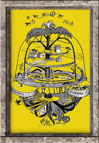 Esta lectura está inspirada en Yggdrasil , el fresno sagrado donde se asientan los 9 mundos, base fundamental de la mitología escandinava y plataforma donde se asienta la tradición rúnica.